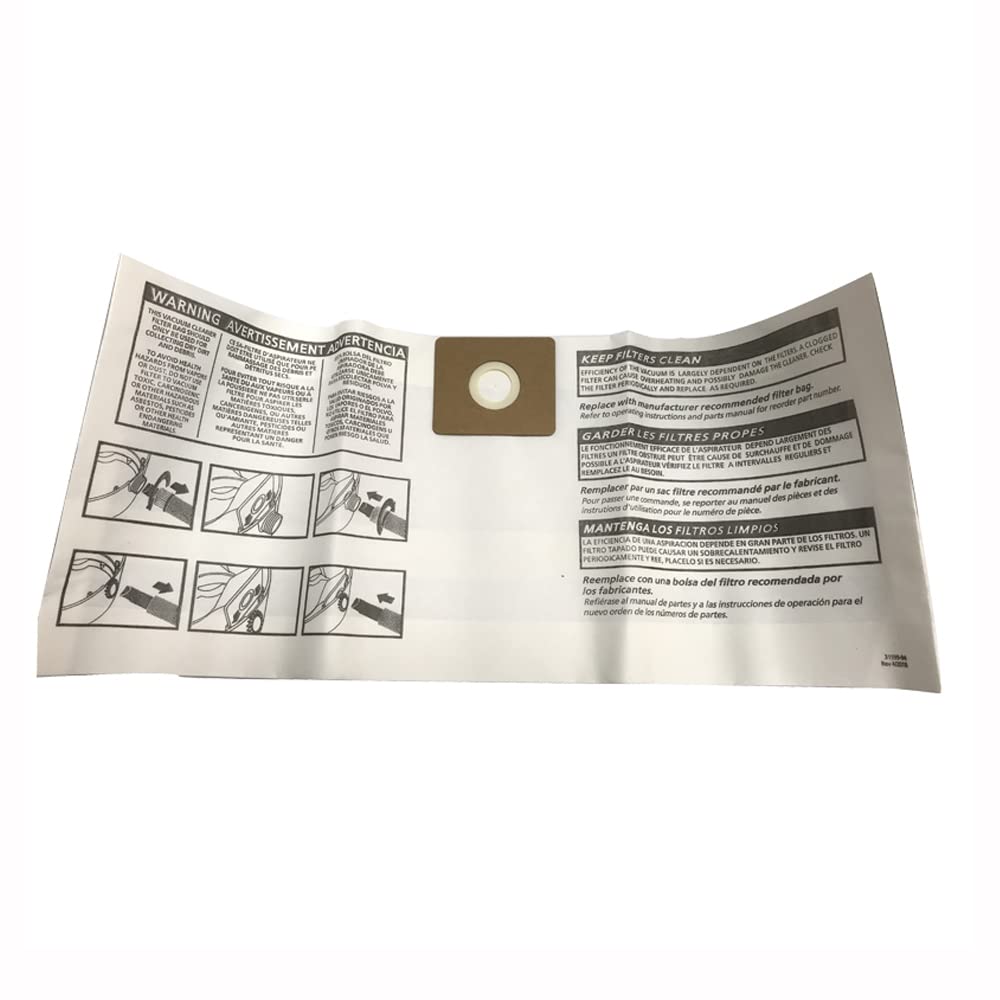 Topvacuumparts DVC 3 Vacuum Bags Designed To Fit Type LL Wet Dry Vacuums # compare to part PSPV02