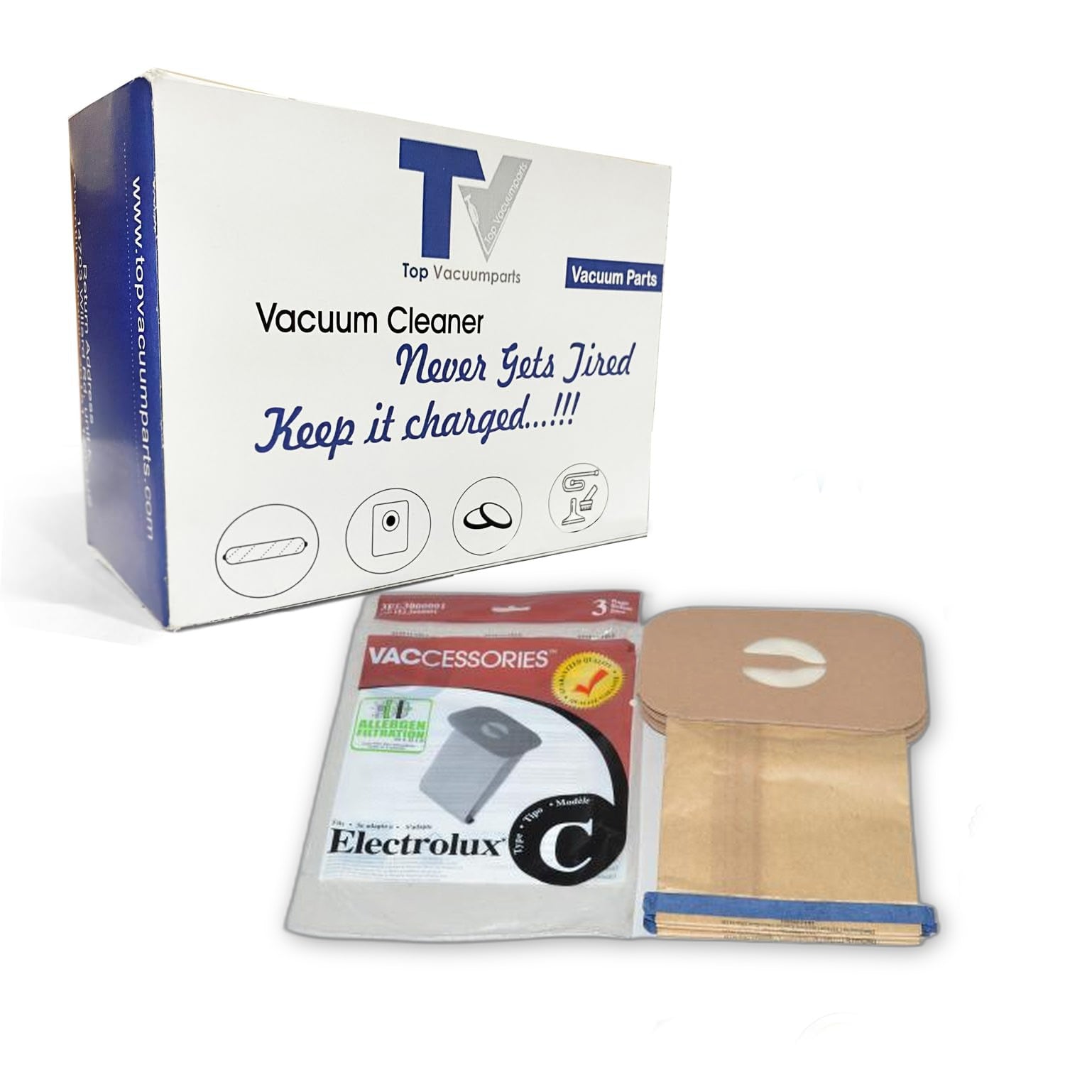 • Topvacuumparts Replacement Part For Electrolux, Style C Canister Vacuum Cleaner Paper Bags (2 Pack 6 Bags) # compare to part 3EL3000001 Topvacuumparts Replacement Part For Electrolux, Style C Canister Vacuum Cleaner Paper Bags (2 Pack 6 Bags) # compare to part 3EL3000001